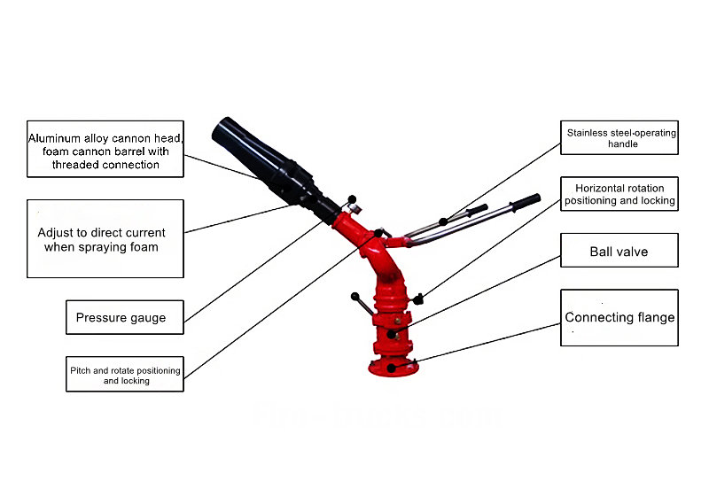 Köpük silindiri, hem ani akım hem de doğru akım fonksiyonları sunarak yangın monitörü olarak kullanılmak üzere çıkarılabilir. İtfaiye Aracı Köpük Topu PL24 İtfaiye araçları ve petrol, kimya ve liman endüstrilerindeki uygulamalar için uygundur.