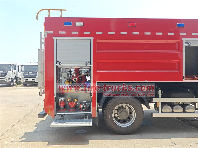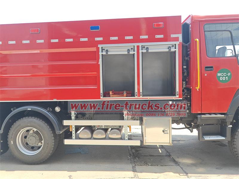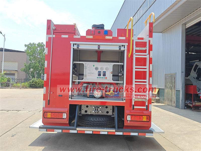 tanker material PP, 4X4, 6X6 drive, RHD drivePOWERSTAR su-köpük itfaiye aracı Kentsel ve banliyö yangın söndürme ihtiyaçlarını karşılamak üzere tasarlanmış, yüksek performanslı bir yangın söndürme cihazıdır. Sinotruk HOWO şasisi üzerine modifiye edilmiş olup, 6000 litrelik bir su deposu ve 2000 litrelik bir köpük deposu ile donatılmıştır. Her iki depo da yüksek kaliteli malzemelerden üretilmiş ve uzun süreli dayanıklılık sağlamak için korozyon önleyici kaplamalarla kaplanmıştır. HOWO köpüklü itfaiye aracı Güçlü su akışı ve püskürtme basıncı sağlayan verimli bir yangın pompası ve monitörü ile donatılmıştır. Monitör, çeşitli yangın söndürme senaryolarına uygun olarak düz akış veya sis düzenine ayarlanabilir.