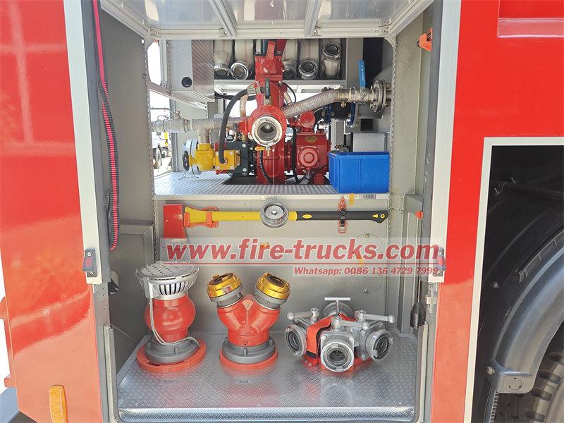 %100 özelleştirilmiş görünüm, su + köpük + kuru toz tanker kapasitesi tasarımı, yangın söndürme araçlarının depolanması için ekipman odası, ayrıca tüm kamyon boyutu özelleştirilebilir .