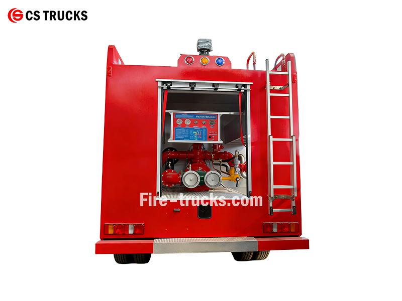 HOWO 8×4 endüstriyel itfaiye aracı, 463 HP gücünde bir MC11.46-61 motor ve ağır hizmet tipi 8×4 şasi ile çalışır. Ön tarafta, ekipman bölmesi alüminyum basamaklı duvarlara sahiptir ve yangın hortumları, emme boruları ve temel kurtarma ekipmanlarını barındırır. Ana gövde, her ikisi de karbon çelikten yapılmış 20.000 litrelik bir su deposu ve 5.000 litrelik bir köpük deposu taşır. Arka tarafta, pompa odasında bir CB10/100 yangın pompası (1.0MPa'da 100L/s), kontrol paneli ve filtreler, bağlantı elemanları ve köpük nozulları gibi aksesuarlar bulunur. Çatıya monte edilmiş bir PL8/80 monitör, 360° dönüş ve ≥45m menzil sağlar.