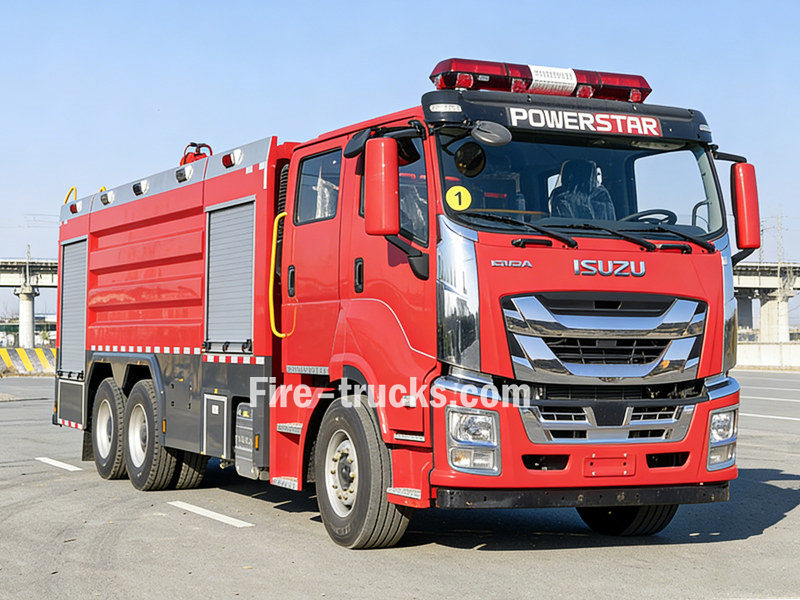 Isuzu GIGA 6x4 polis köpük itfaiye aracı, özellikle petrol ve yanıcı sıvı yangınlarını söndürmek için tasarlanmış bir itfaiye ekipmanıdır. Köpük sıvısı depolama, oranlama ve püskürtme sistemlerini entegre eder.