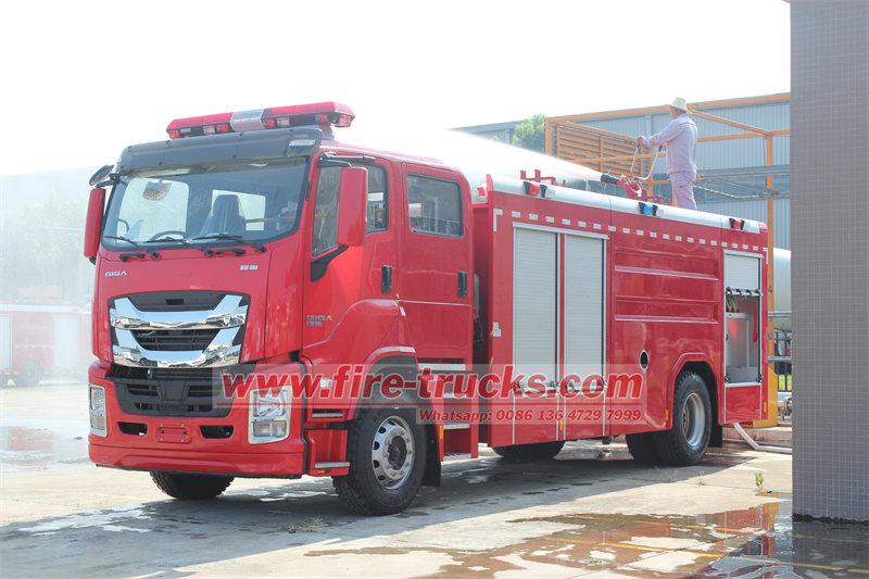 tanker material PP, 4X4, 6X6 drive, RHD drivePOWERSTAR 6000L Su Yangın İtfaiyesi ISUZU GIGA QL1180EQFRY şasisi temel alınarak modifiye edilmiş olup, 6HK1-TCG61 motor ve FAST 8 ileri şanzıman ile donatılmıştır. Isıtma/soğutma kliması, hidrolik direksiyon, merkezi kilit, elektrikli camlar, çok fonksiyonlu direksiyon simidi ve çok fonksiyonlu LCD gösterge paneli bulunan yeni ISUZU VC61 sınıfı kabine sahiptir. ISUZU GIGA itfaiye aracı İki ana bölümden oluşur: itfaiyeci mürettebat bölmesi ve gövde. Mürettebat bölmesi, 2+3 kişilik oturma kapasitesine sahip çift sıralı bir tasarıma sahiptir. Gövdenin ön kısmında ekipman bölmesi, orta bölümde su deposu ve arka bölümde pompa odası bulunur. Su deposu, 6000 kg kapasiteli paslanmaz çelikten yapılmıştır. 40 L/sn kapasiteli CB10/40 normal basınçlı yangın pompası ve 65 m menzil ve 360° dönüş kabiliyetine sahip üstten monteli PS40W yangın monitörü ile donatılmıştır. Bu araç, yüksek güç-ağırlık oranı, kapsamlı performansı ve merkezi, kullanıcı dostu kontrolleriyle öne çıkar.